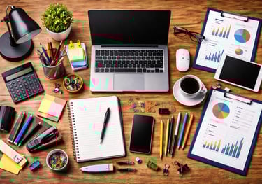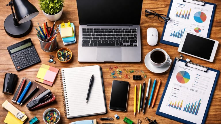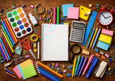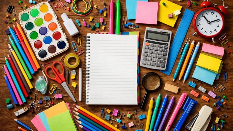 Itens essenciais de papelaria para uso diário, garantindo organização, produtividade e apoio às atividades administrativas e pedagógicas.