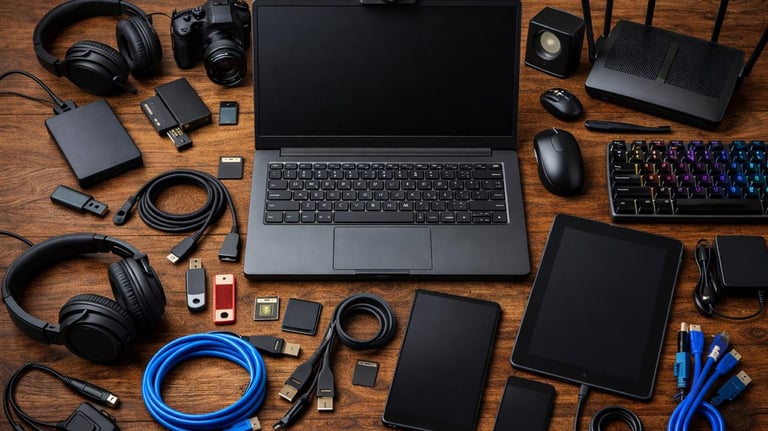 Equipamentos, periféricos e suprimentos de informática que asseguram eficiência, conectividade e suporte às rotinas tecnológicas.